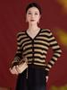 Mom's Cardigan Spring Autumn and Winter Striped Collar Jacket New Women's Knitted Top