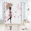 Bathroom Shower Curtain Four-piece Digital Printing Butterfly Plant Waterproof Shower Curtain Shower Curtain Partition Free of Punching
