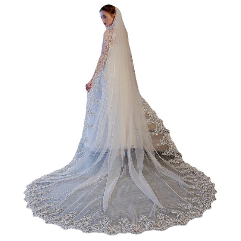 Exquisite 3-Meter Lace Veil for Wedding Dress - European & American Bridal Train Photo Accessory