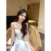 Kumikumi Pure Desire Style Hollow Single-Breasted Sling Dress Women Summer Age-Reducing Chic Slimming White Short dress