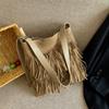 Autumn and winter retro fringed bag women's new casual versatile messenger bag suede bucket bag