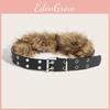 Solid Fashion Color Faux Fur Decoration Women Belt With Double Buckle Breasted