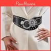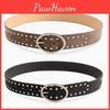 This alternative punk leather belt features a durable faux leather strap measuring 105 cm in length and 5.3 cm in width. It is equipped with a metal pin buckle and rivet details, supporting a secure fit and adding a distinctive style. The belt's casual design enhances everyday outfits and streetwear looks. Users can wipe clean with a damp cloth for maintenance.