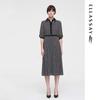 Discover the ELLASSAY Women's Elegant Long-Sleeve Dress, crafted from 100% polyester for a slightly soft, thin feel. This ladylike midi dress features a sophisticated turn-down collar and stylish lantern sleeves. Designed with a flattering high-waist and an X-shaped (A-line) silhouette, it boasts trendy pleat details and a beautiful tiered skirt. Perfect for daily wear, this dress is suitable for women aged 30-34 and ideal for transitional seasons like autumn and mild summer days.