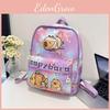The Capybara cartoon backpack is a spacious school bag designed for elementary students, supporting daily educational needs. Made of durable Oxford cloth with a polyester lining, lightweight construction with a cushioned shoulder strap system. Ideal for school use, it offers ample storage with a versatile three-piece set including a backpack, shoulder bag, and pencil case. Users will appreciate its animal-themed print, moisture-resistant fabric, and easy maintenancesimply wipe clean with a damp cloth.