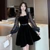 Introducing the 2024 Collection's stunning black midi dress, designed with both European and American fashion influences. This elegant piece features fashionable tassels and sophisticated trumpet sleeves that add a touch of drama to the silhouette. The open back adds an alluring element, making it perfect for special occasions. Crafted from high-quality polyester, this dress ensures comfort and longevity, enhanced by the unique zhigong material used for the fur accents. Embrace a blend of timeless style and modern flair with this captivating ensemble.