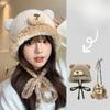 New Cute Bear Knitted Hat for Women in Autumn and Winter Warm Plus Velvet Ear Protection Hat Cold Proof Pullover Woolen Hat