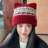 New Cute Cat Ears Plus Velvet Knitted Hat for Women in Autumn and Winter Thickened and Warm Ear Protecting Lei Feng Hat Showing Face Small Woolen Hat