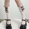 Lolita Socks Spring and Summer Hollow Lace Bowknot Thin Breathable White Stockings Middle Tube Casual Black Socks