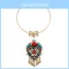 Geometric Style Ethnic Necklace Alloy Metal Heart Glass Pendant For Gift Travel