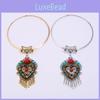 This ethnic-inspired geometric necklace features a heart-shaped glass pendant, combining alloy metal with a durable electroplated finish in vintage gold or silver tones. The chain measures 14*6.4cm, supporting a bold, modern look. Ideal for travel, special occasions, or gift-giving, it enhances any outfit with its distinctive design. Wipe clean with a soft cloth to maintain its finish.