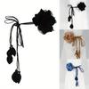 Women Elegant Big Flower Dress Decorated Tassle Chiffon Waistband Waist Chain Belts Waist Rope