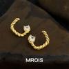 Retro Chinese Style Real Gold Zircon Stud Earrings with S925 Silver Needle - Light Luxury