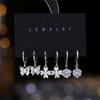 6Pcs Copper Flower Butterfly Earrings Hook Piercing Crystal Ear Studs Zircon Earring Set Ladies