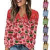 Women's Fashionable Casual Christmas Print V-Neck Long-Sleeved Button-Down Blouse