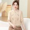 Middle-aged and old women's clothing spring and autumn thin shirt middle-aged mother spring fake two-piece knitted bottoming shirt top