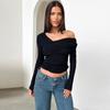 Women's One Off Shoulder Long Sleeve Tops Ruched Asymmetrical Neck Slim Fit Y2K Shirt