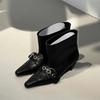 Мода Мода Снэп Остроносые Ботильоны на Низком Каблуке Женские Весна и Осень Новые Уличные Металлическая Пряжка Рукав Одинарные Сапоги