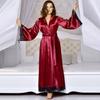 Kadın Zarif Blazer Yaka Büyük Beden Bol Kesim Baskılı Uzun Maksi Bağcıklı Uyku Dinlenme Elbiseleri Sabahlıklar