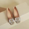 French square head high heels women's thick heel 2025 new spring and autumn women's shoes burgundy comfortable low heel light mouth single shoes