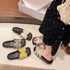Retro rivets one word with small slope heels slippers women's summer wear seaside vacation casual beach sandals