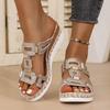 Fashion Summer 2025 Women Slippers New Large Size Solid Color Round Head Shoes Women Metal Casual Outdoor Roman Style Wedge Sandals