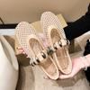 Fashion Air Mesh Breathable Ballet Flats Women Fashion Rivet Belt Buckle Design Flat Shoes for Women Light Cozy Summer Casual Sneakers